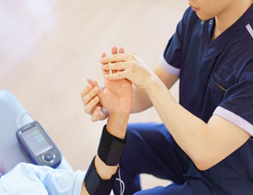 脳血管疾患発症後の運動麻痺に対し、機能的電気刺激装置(FES)を使用し、効果的な上肢・下肢の機能練習を行っています。