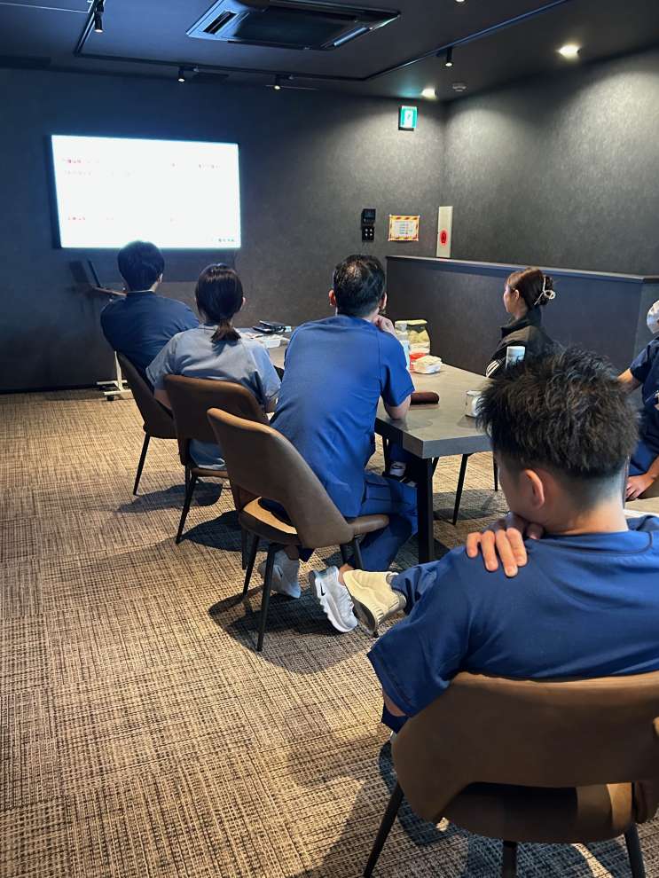 お昼休みにリラックスした状態で勉強会をみんなでしてる風景です。