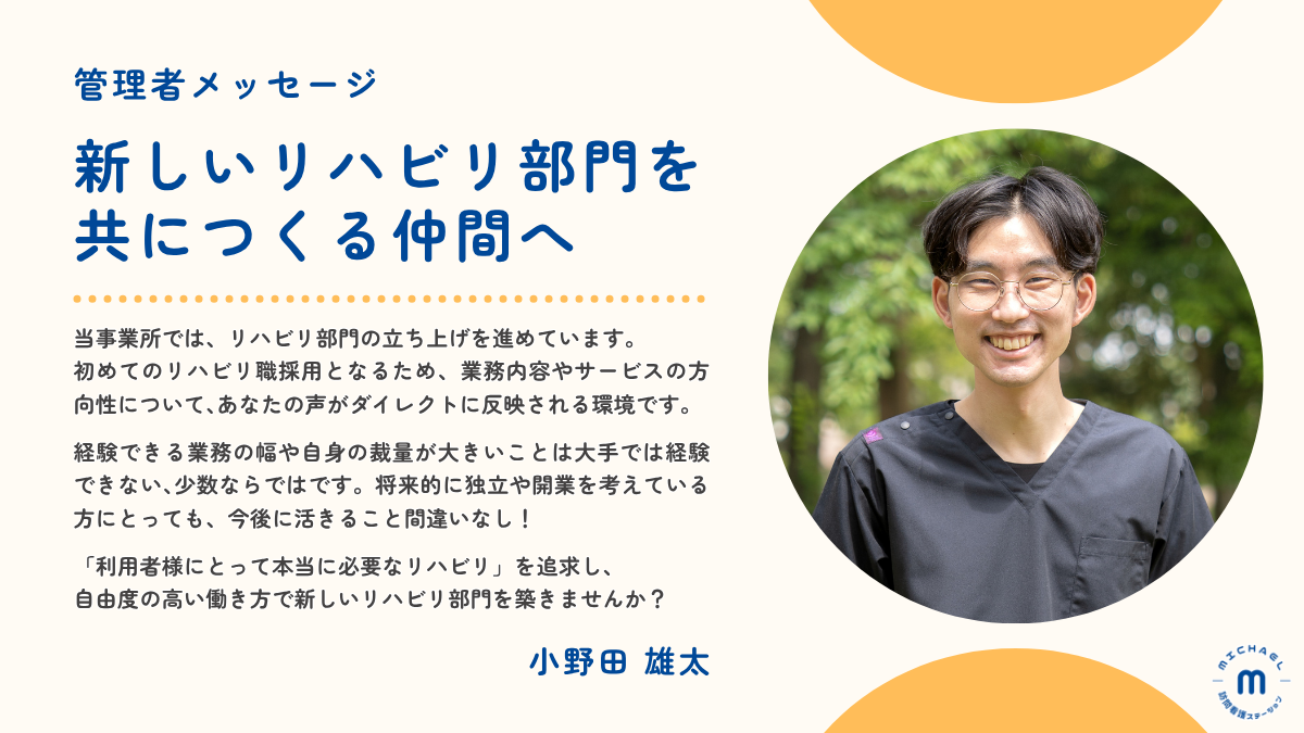 「リハビリに集中できる環境」を目指しながら、一緒に成長していきましょう。