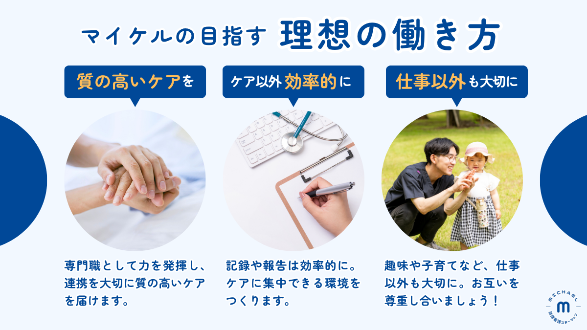 地域住民や連携機関の皆様から「マイケルさん!」と気軽にお声がけいただき、頼りにしていただける存在を目指しています。