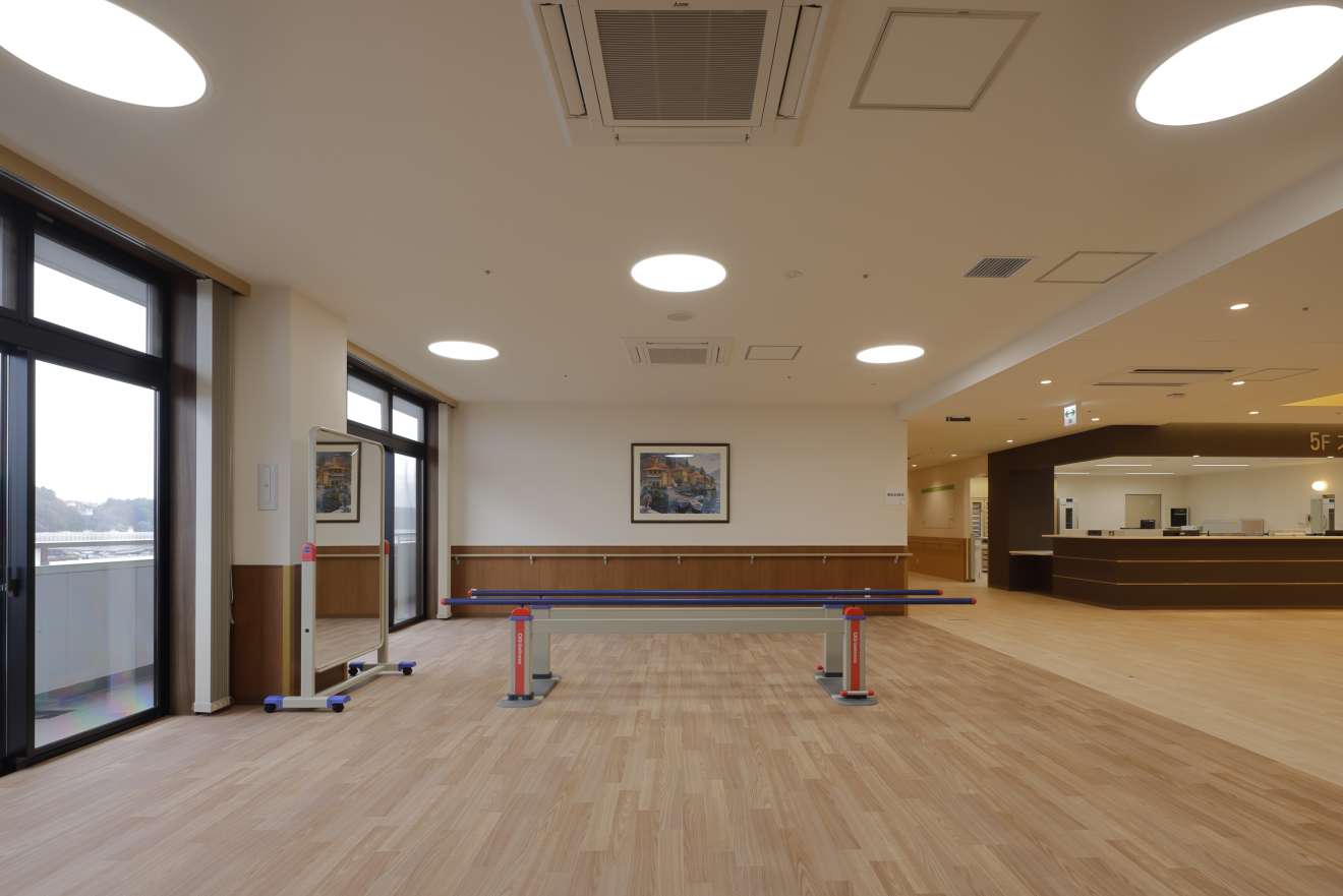 運動、活動の可能性を最大限に引き出す「広いリハビリテーションスペース」や「2LDKのADLハウス」「生活しやすい病棟スペース」に機器、福祉用具を多数揃えることで、患者さまごとでカスタマイズされたリハビリテーションを提供しています。