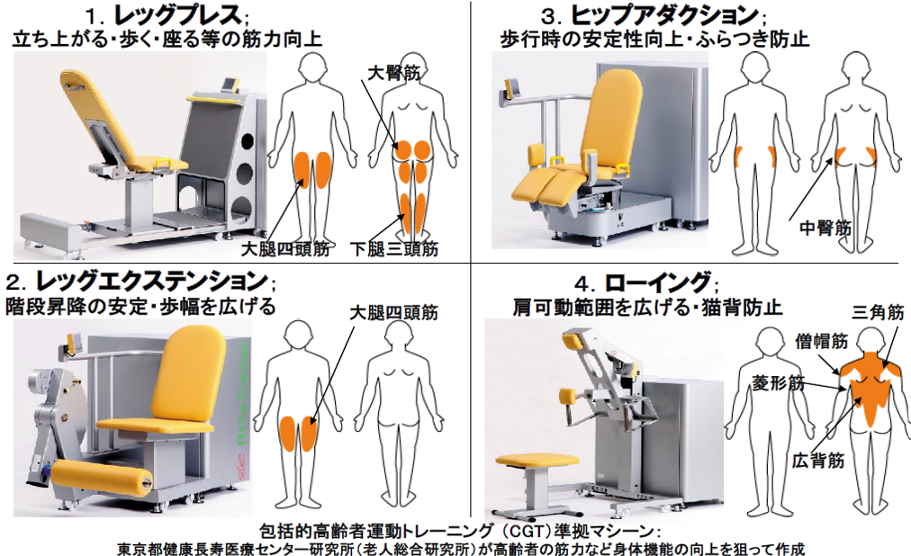 基本動作訓練はもちろんですが、マシントレーニングでの筋力や耐久性の向上を図りながら、利用者さまの備えている力を維持し、在宅生活が安全安心に送れるようにサポートしています。