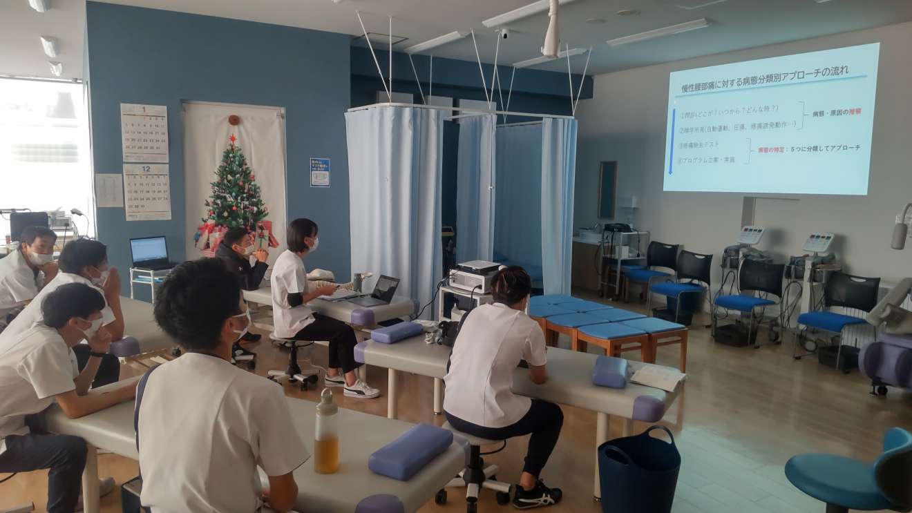 月1回のPT/OT勉強会。知識の共有を行い、スキルアップが出来るように。みんなで刺激しあっています。 その他、症例検討を月1回、エコー勉強会を月2回開催。