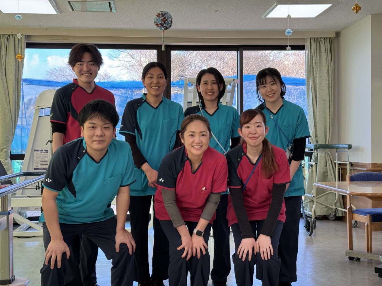 現在、リハビリ課ではPT4名(常勤4名)・OT5名(常勤5名、非常勤1名)・ST1名(常勤1名)・リハビリ助手が常勤で1名が在籍しております。