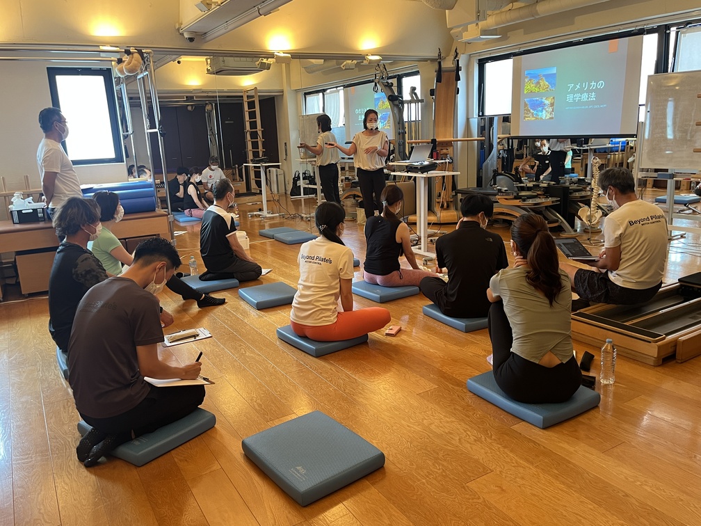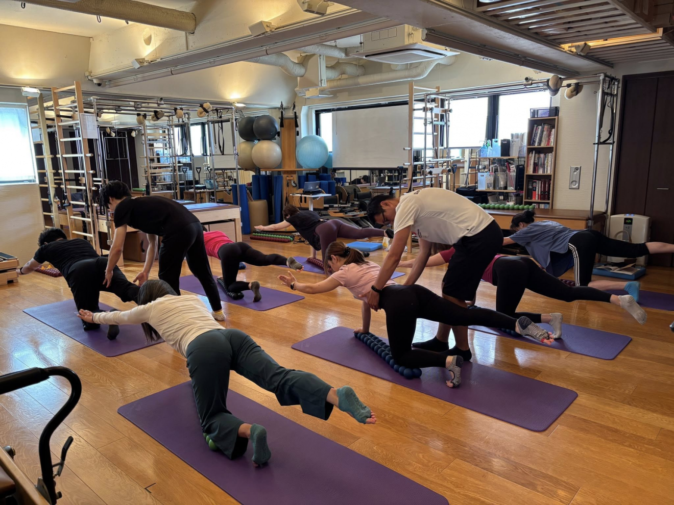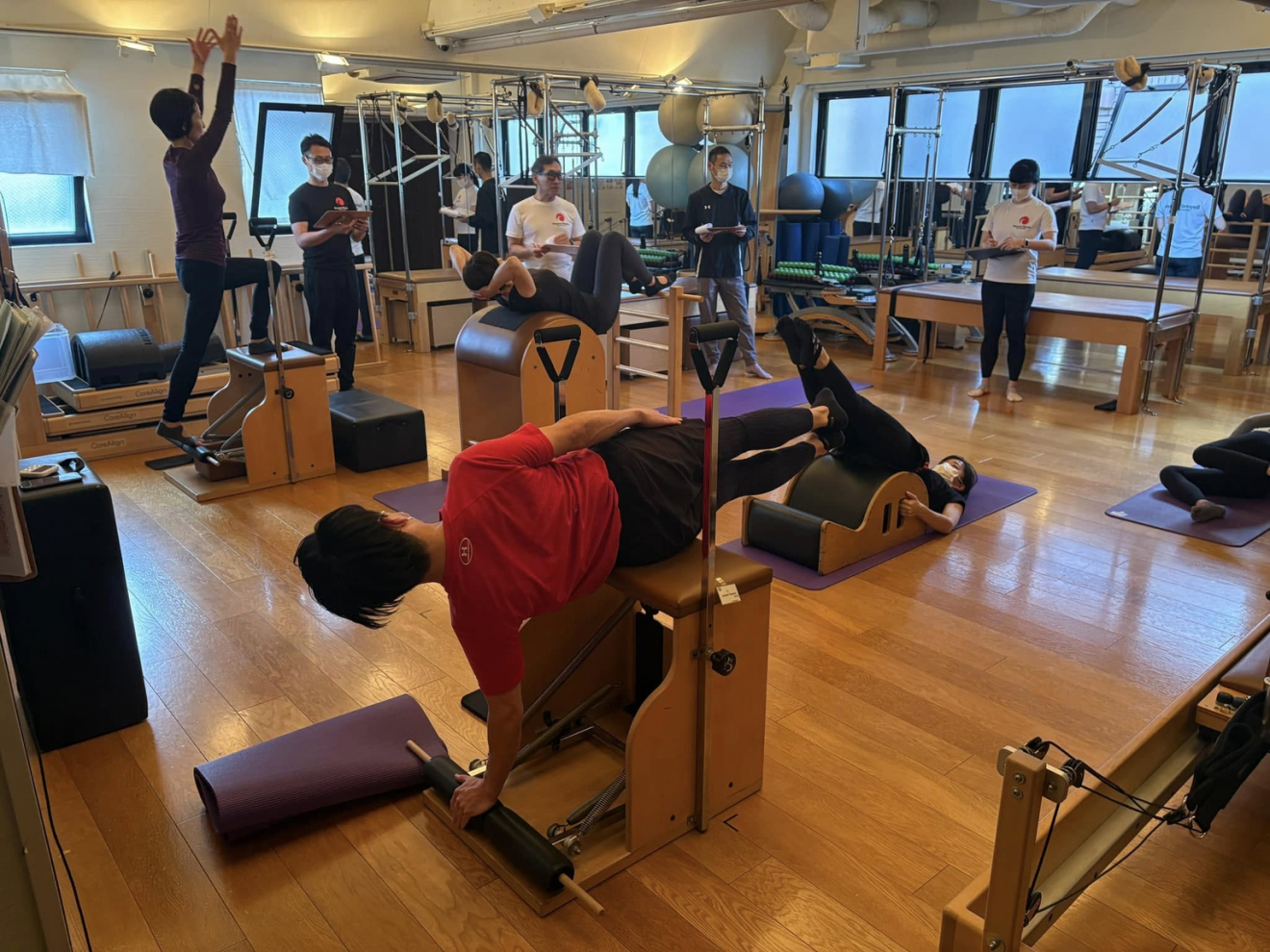 教育事業:Motor Control®: Beyond Pilates® ピラティスの第一人者として知られる当院理事長の武田淳也が理学療法士の岩根直矢ら(いずれもNCPT)と共に開発した日本発、世界初の最もメディカルベースドな ピラティス指導者養成コースです。画像は試験の様子