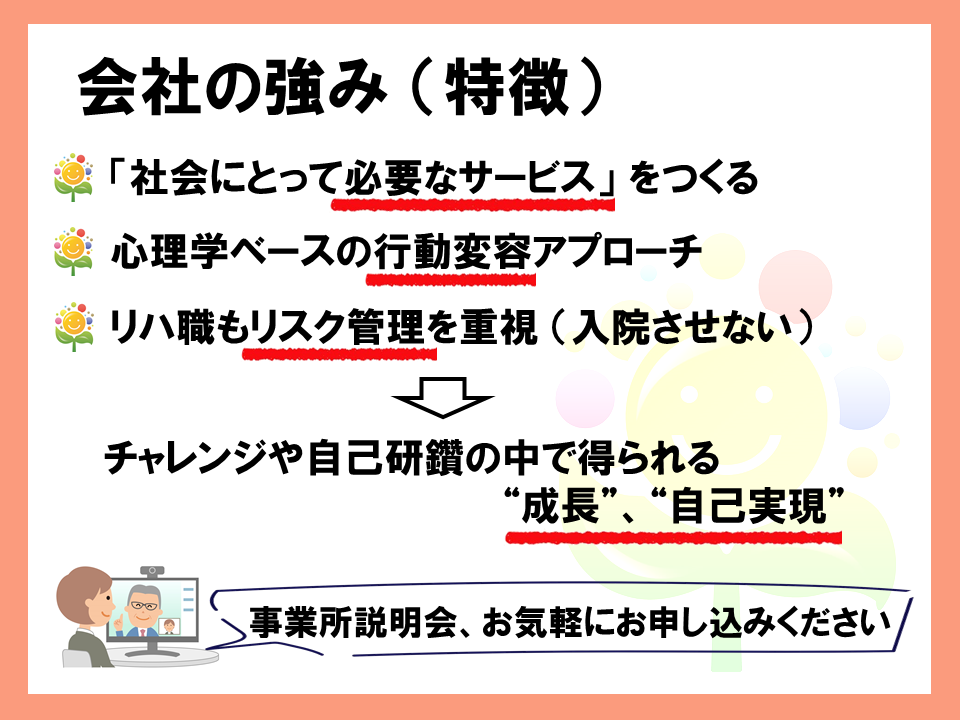 事業所説明会は対面、オンライン(ZOOM等)の両方があります。