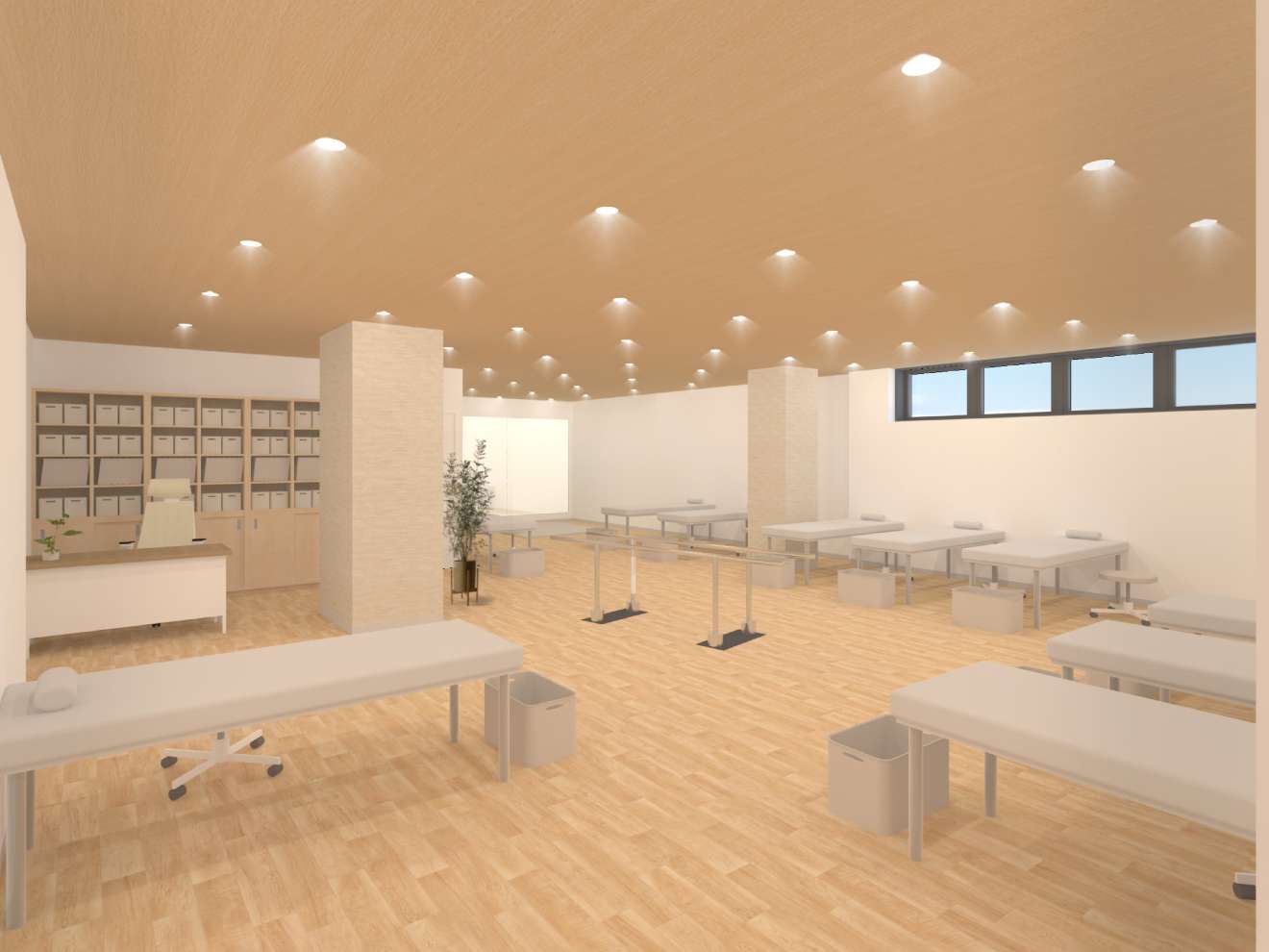 広々としたリハビリ室を備え、全てのベッドに昇降式リハビリベッドを導入するなど、スタッフが安全かつ効率的に業務を行える環境を整えています。