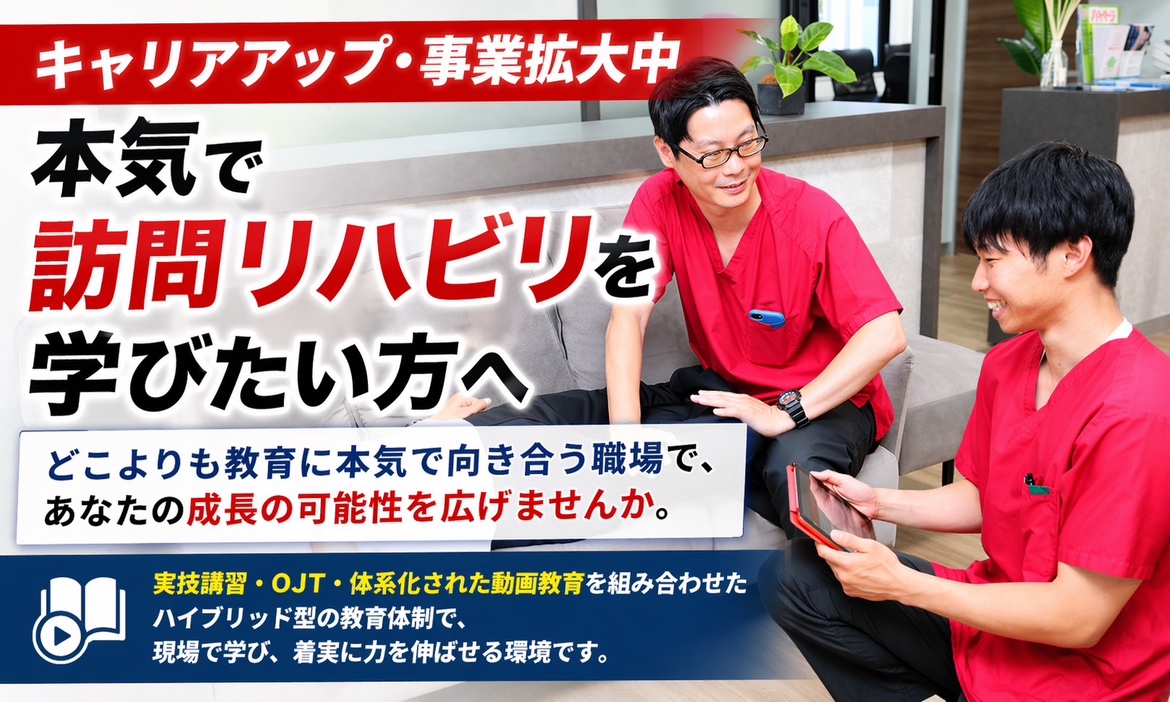 “よくある訪問リハビリ”で終わらない。他にはない20年積み上げた“教育”であなたの臨床が変わりキャリアアップができる職場で可能性を試してみませんか? “よくある訪問リハビリ”で終わらない。他にはない20年積み上げた…