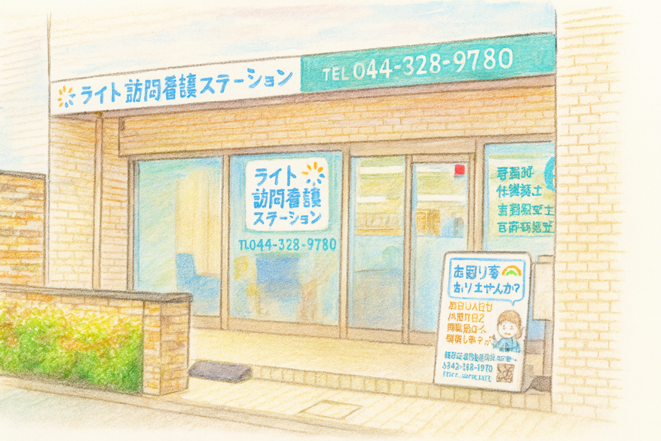 川崎市中原区にある【ライト訪問看護ステーション】、また2026年4月に川崎市宮前区へ開設した【ライト訪問看護ステーション宮前】です。