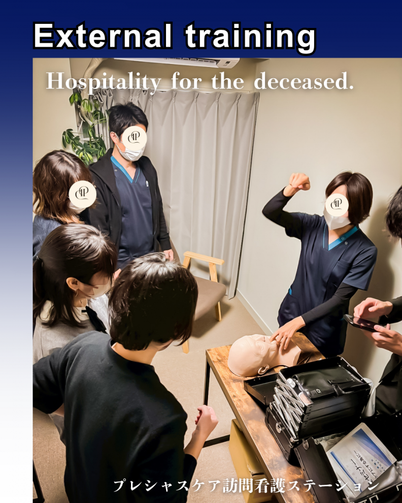 ✦定例勉強会✦ ~ 外部・内部研修 ~ 写真は葬儀のプロに学ぶエンゼルケア実技研修。 当ステーションは昨年に開設以来、毎月勉強会を開催しています。 毎回、看護師・療法士・事務員・役員が一緒になって学び、現状維持に留まらず、私たちは常に「 進化 」を目指しています!