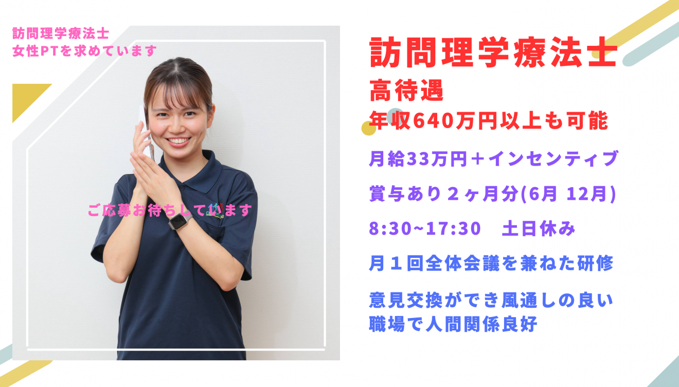 【高待遇で年収500万円以上600万円も可能】訪問看護ステーションでの訪問リハビリ 土日休み 賞与2ヶ月 【高待遇で年収500万円以上600万円も可能】訪問看護ステーショ…