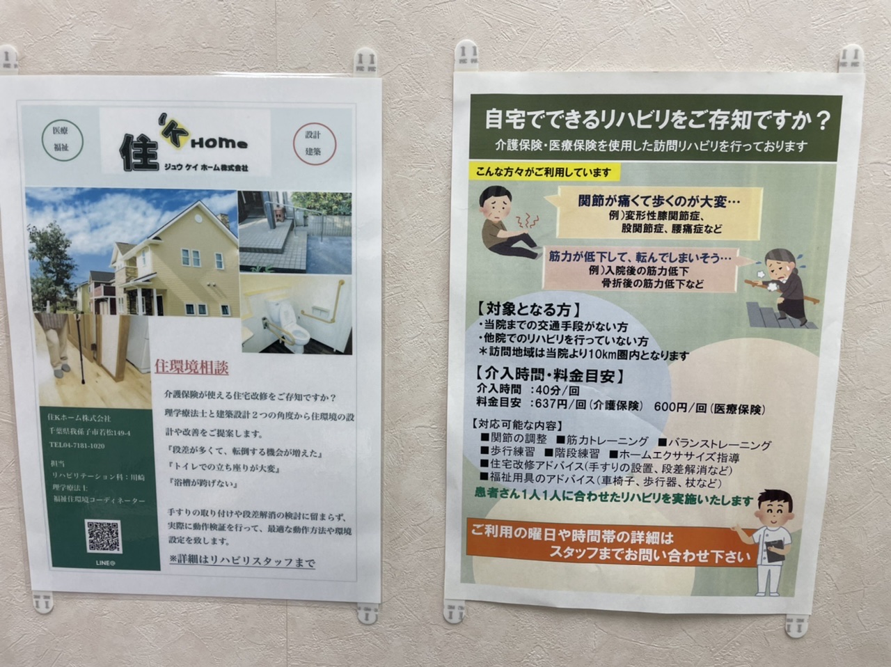 現在、リハビリスタッフはPT常勤3名、鍼按摩マッサージ師1名、助手3名です。