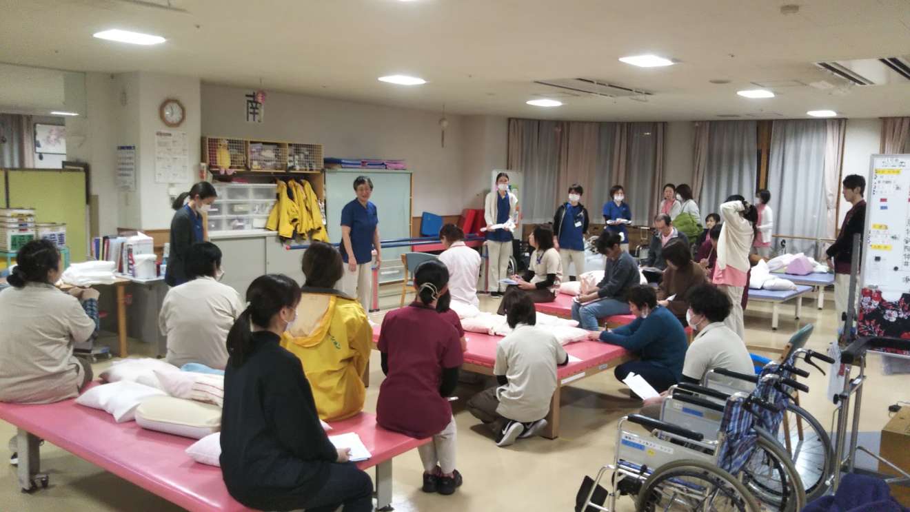 リハ職による褥瘡予防研修会の様子です。 施設内の学習会は毎月1回開催しています。約半数の会は、外部講師を招いて開催しています。外部研修は、任せていきたい業務や役割に応じて、積極的に参加してもらっています。毎年開催される横浜市老健大会、全国老健大会へもエントリーしています。