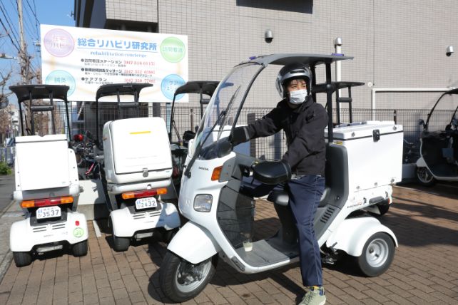 訪問は原付きバイクあるいは電動自転車で行います。原付きバイクや電動自転車、スマホ、ユニフォームの貸し出し、雨具やグローブ等の道具は会社で負担いたします。原付きバイク初心者には実技研修がありますので、安心して運転できます。