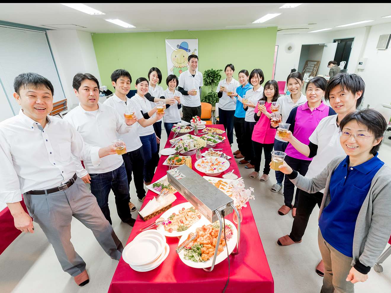 総リハでは新入社員入社時や季節の行事ごとにお祝いや打ち上げ等も行っております。部署を超えた絆はここで培われています!