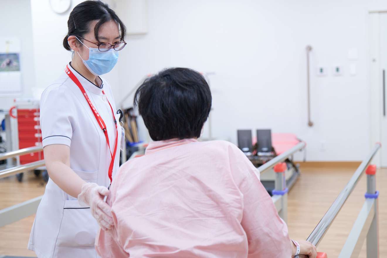 荒川区に根差して80余年、日常生活の支援が必要なご高齢の患者さんが多くいらっしゃいます。そのため多職種での連携や徹底したリスク管理が欠かせません。体系的な教育や病棟との連携、また個人の研鑽などで、日々のケアの中で様々な患者さんに対応できるセラピストを目指しています。
