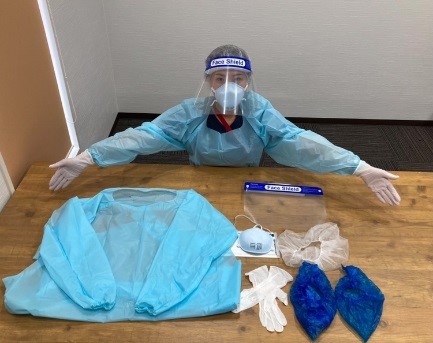 【徹底した感染対策】 全職員にN95やエプロンなどの感染予防セットを支給しています。※血圧計や聴診器、パルスオキシメーターなども新品を支給しています。