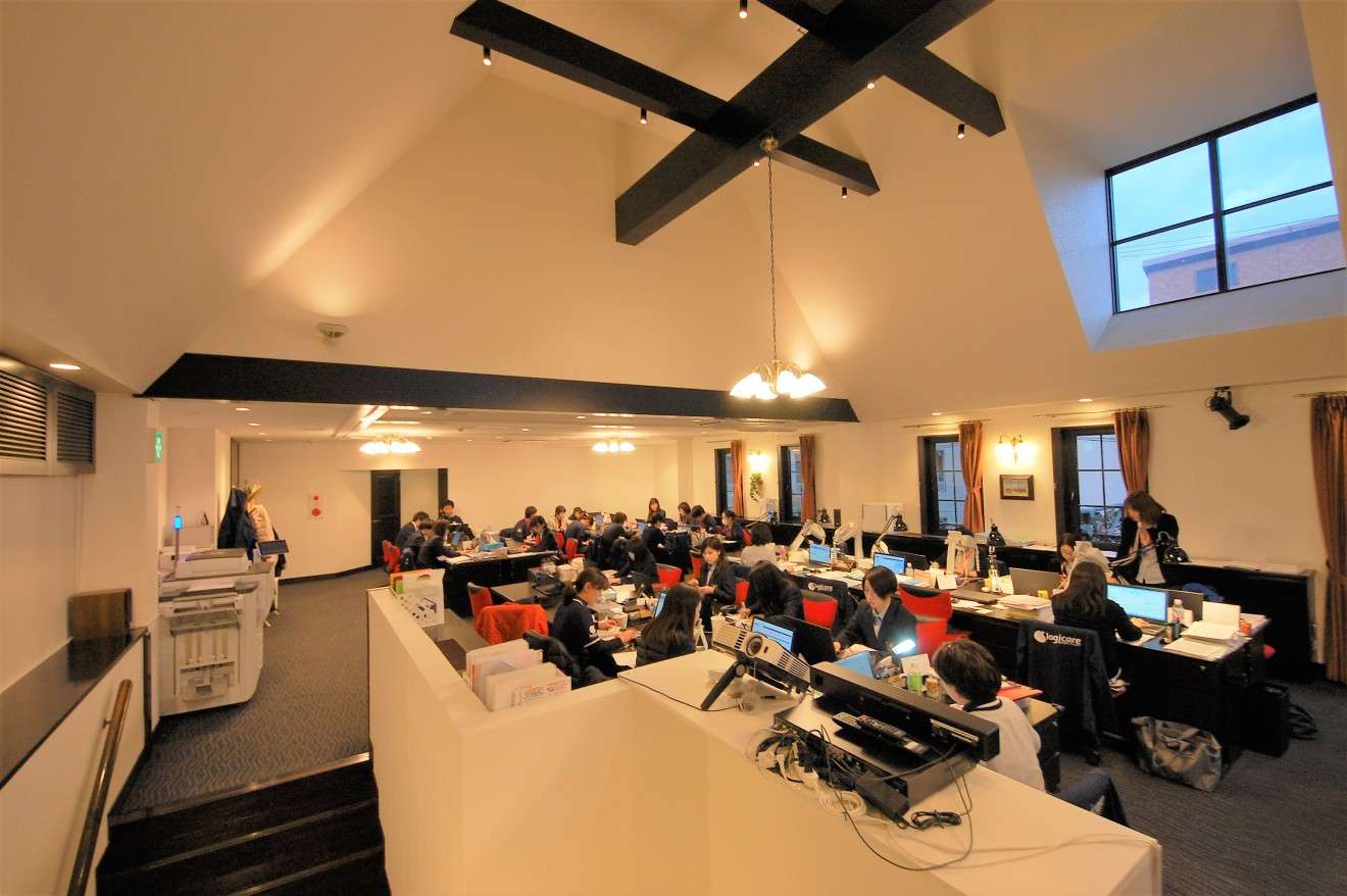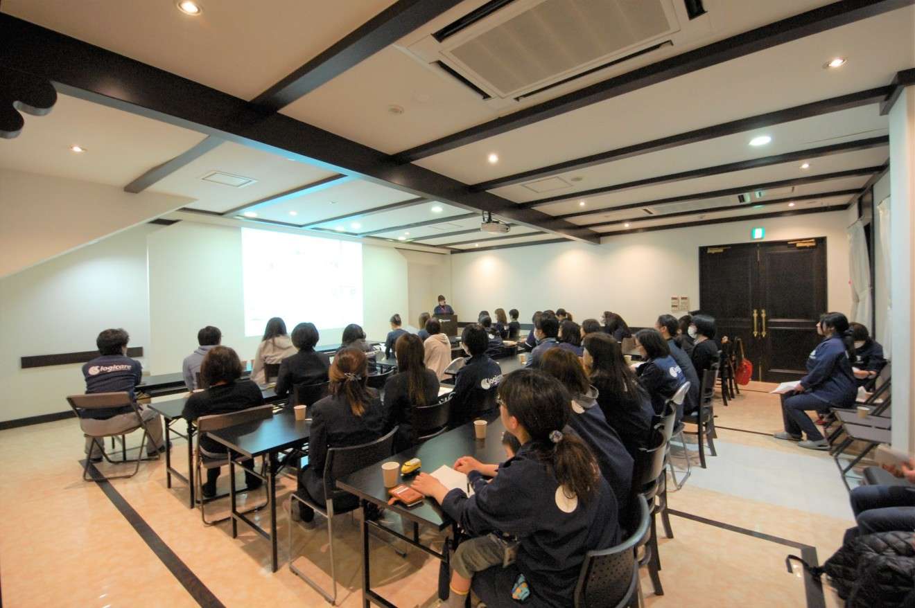 【社内研修の様子】 ケアマネや看護師、ヘルパー、福祉用具の相談員とも一緒に合同研修 社内にいながらにして様々な多職種との活動が可能です。 ※コロナ以前の様子です