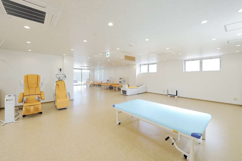 1階と2階の2フロアー合わせて90平米で、1階が診療部門、透視付きレントゲンと 全身骨密度検査 (DEXA)など、骨折、脱臼の整復から、神経根ブロック、骨粗鬆症まで 脊椎疾患、関節疾患、スポーツ疾患など、さまざまな整形外科疾患に対応できる設備を整え、2階はリハビリ部門で、明るく広いリハビリスペース(約45平米)で、運動療法、頚椎・腰椎牽引、低周波治療、超音波治療など物理療法を行っております。