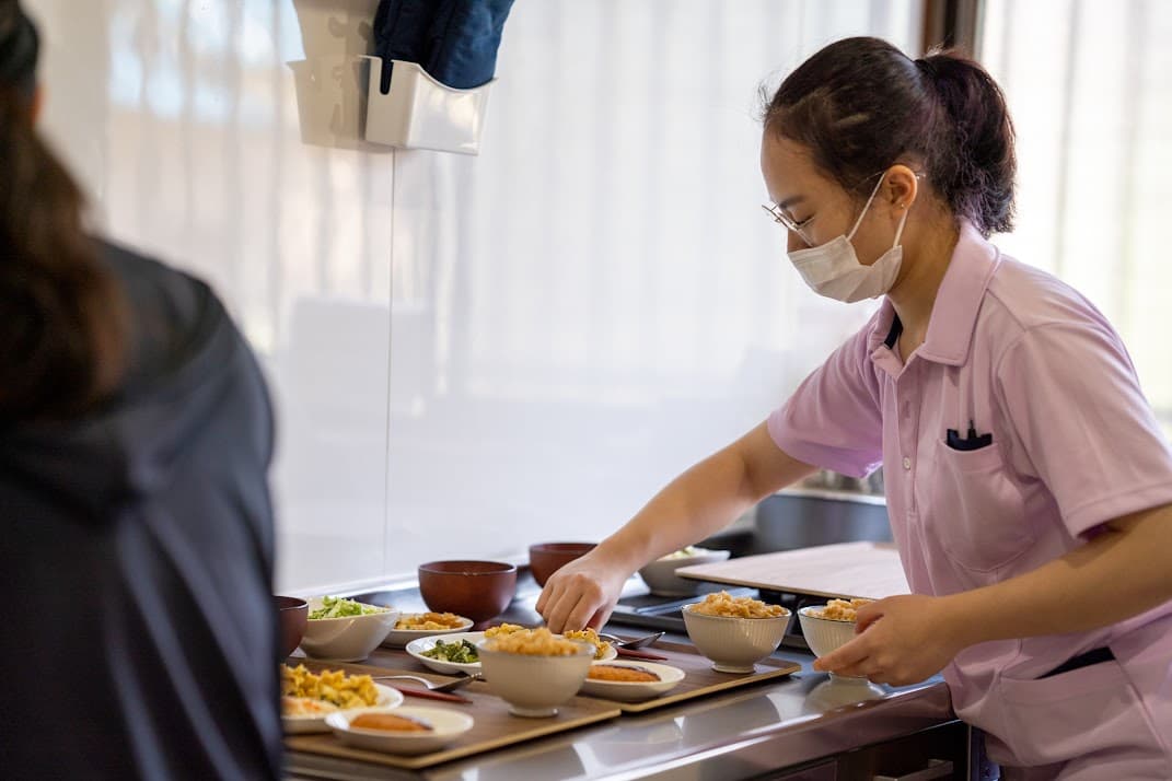 「日中の暮らしから共に整える」をコンセプトにし、入浴介助に力を入れています。重度の方でも安心、安楽に入浴できるユニバスを導入しており、浴槽の出入りにはスライド式の専用椅子、リフト機能があるため介助者の負担も軽減されます。