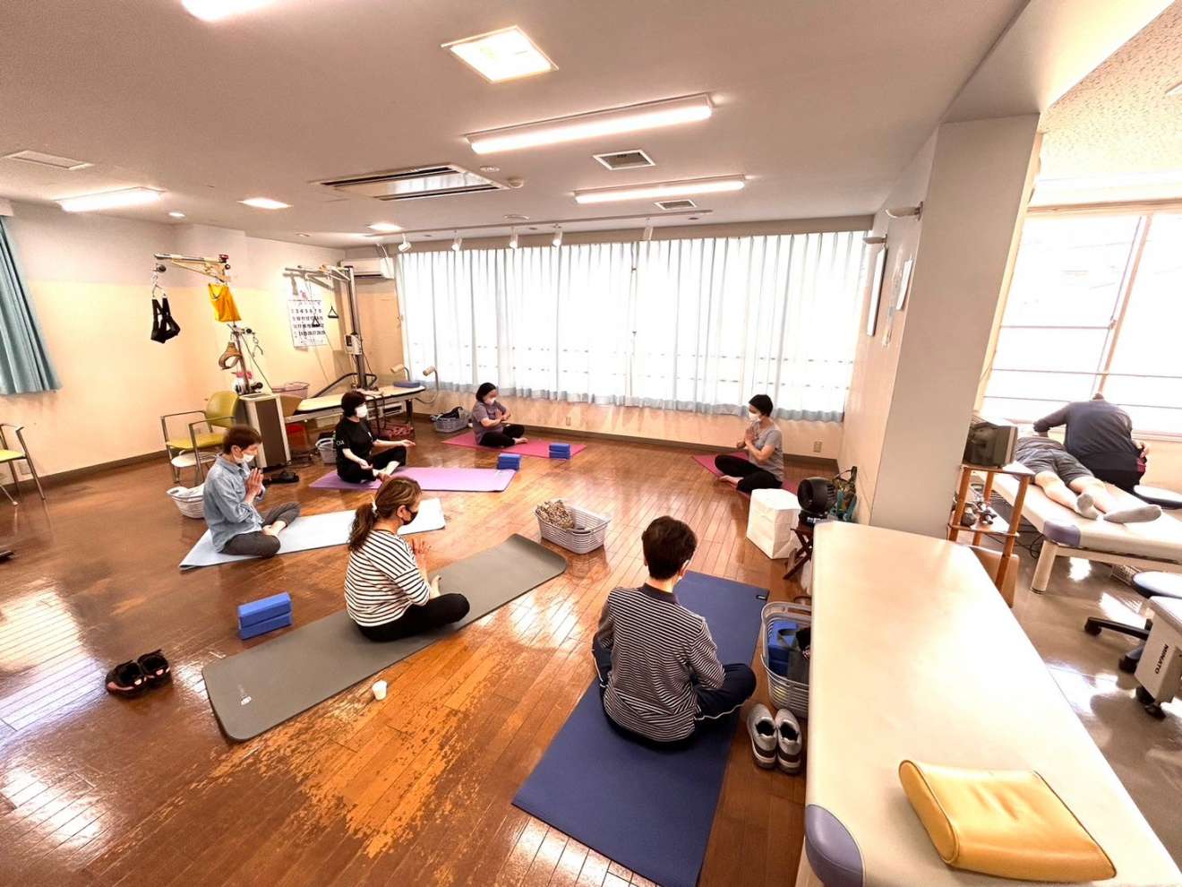 ピラティス及びヨガインストラクター、呼吸療法認定士の資格を有する理学療法士によるBody coachの様子。 毎週水・木曜日の午前中に開催しております。