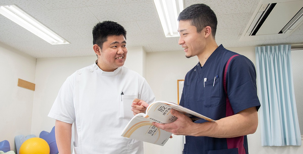 新卒入職者のコメント・ 入社して知識や経験が不足していることに不安がありましたが、先輩スタッフの方々に支えて頂き楽しく働いています!業務では外来・通所・訪問と多岐に渡り、また整形から中枢と多くの疾患にも関わることができ多くの事を学べています!今後ももっと成長できるように頑張りたいと思える職場です!