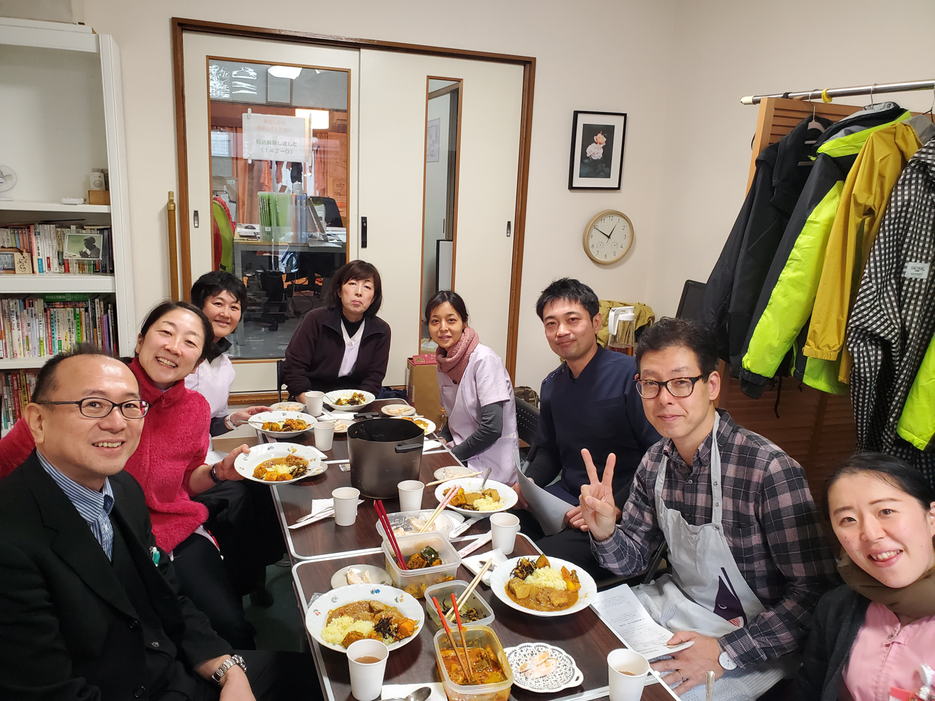 ”ケアの質を上げる!”ことを掲げ、”定期的な勉強会を行っています。訪問診療医、ケアマネージャーと協働してカンファレンスなども不定期に開催しています。プロ並みに美味しいカレーを作ってくれる薬剤師さんの勉強会は、美味しくて楽しくて楽しみなものです。現在はZOOMを利用して勉強会を行っています。