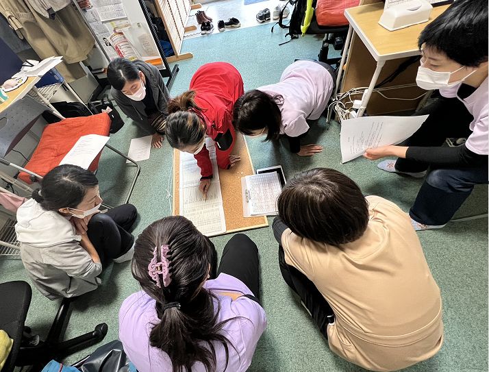 定期的に、防災訓練を行っています。目黒区は防災キットや防災手帳など充実した物があるので、それらをどう普及させるかを定期的に話し合っています。安否確認表も利用者様に合わせて更新しています。