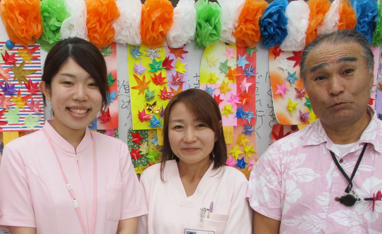 医師、PT、OT、ST、看護師、介護福祉士、管理栄養士、ケアマネジャーが施設で一所懸命に利用者さまと向き合っています。