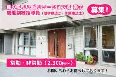 ブランクからの復帰を応援しています。要支援の方が中心で重介助が少なく、子育て中のスタッフも多い職場です。勤務時間も柔軟に調整できます。 「予防専門リハビ…