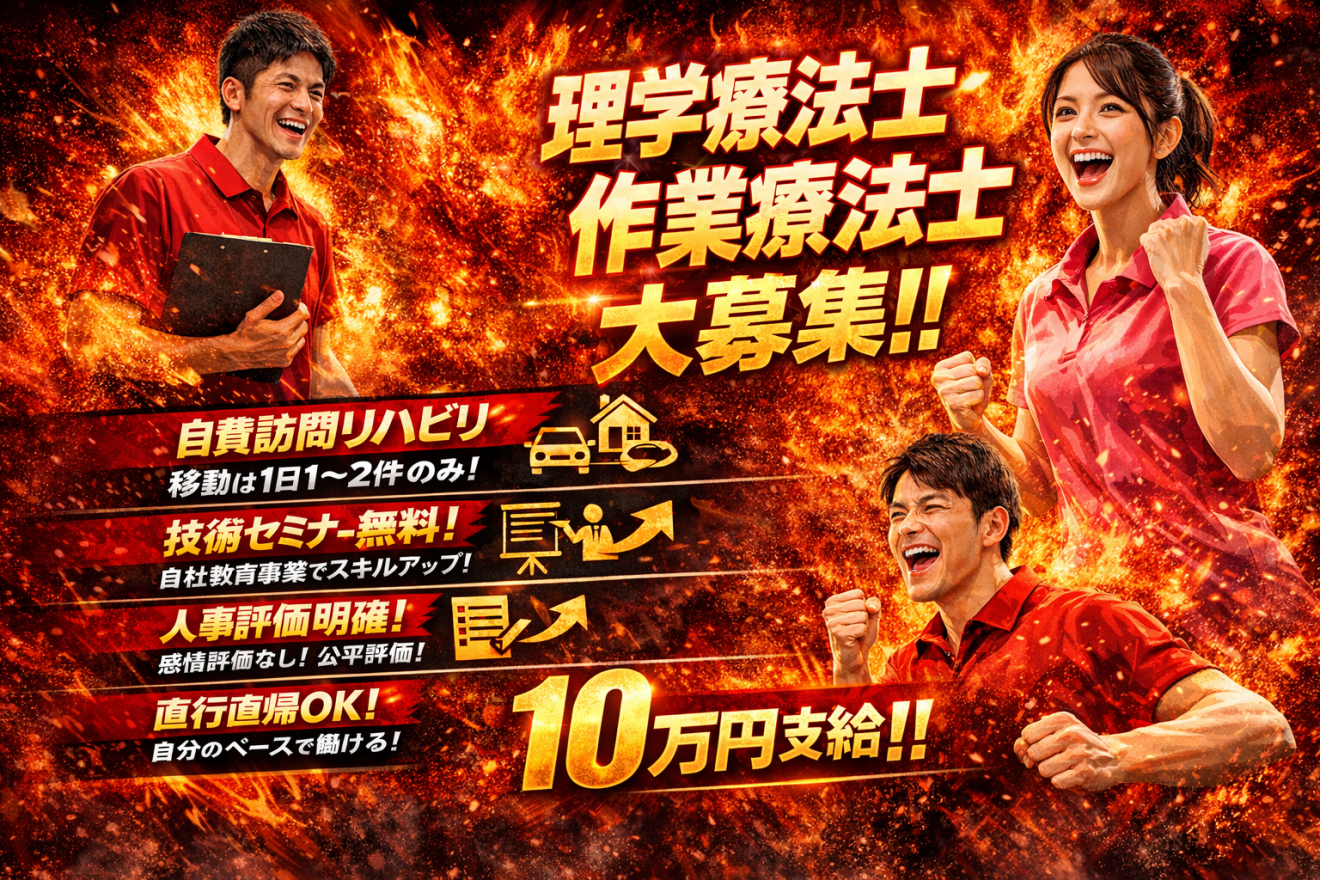 土日祝休みで働く訪問リハビリ!年間休日数124日【入社祝い金10万円支給】