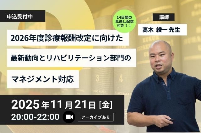 2026年度診療報酬改定に向けた最新動向とリハビリテーション部門のマネジメント対応(14日間の見逃し配信付き)