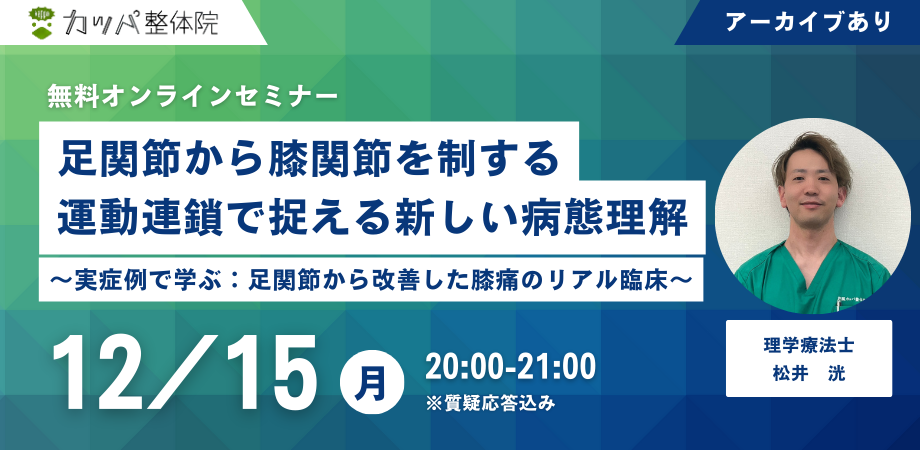 【今屋健先生】ACL・半月板術後の運動療法と臨床技術〜教科書には載っていないプロがこだわる“コツ”とは?〜(リピート配信)