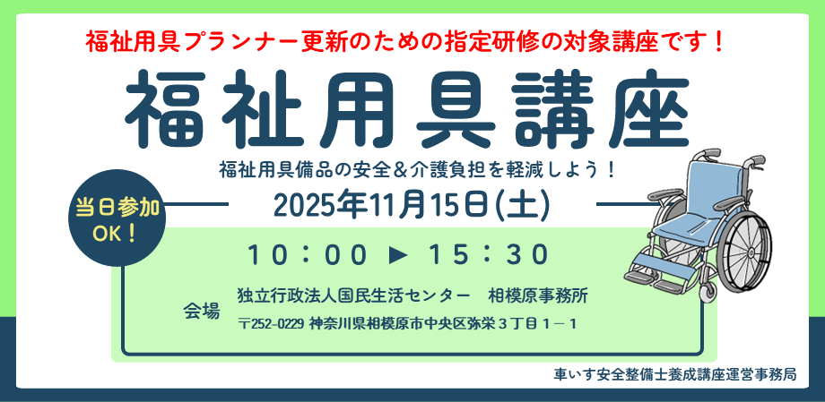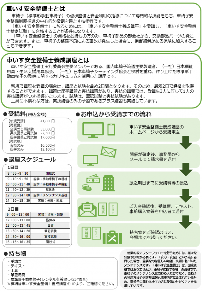 車いす安全整備士養成講座のホームページより、お申込み・お問い合わせください。