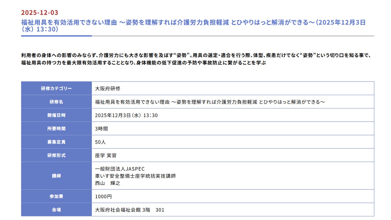 【超初心者(福祉用具の)メンテナンスセミナー】2025年11月開催 【超初心者(福祉用具の)メンテナンスセミナー】2025年1…