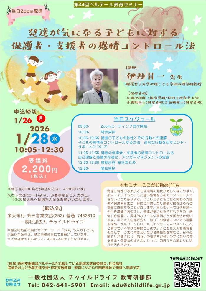 第44回ベルテール教育セミナー、「発達… 第44回ベルテール教育セミナー、「発達が気…