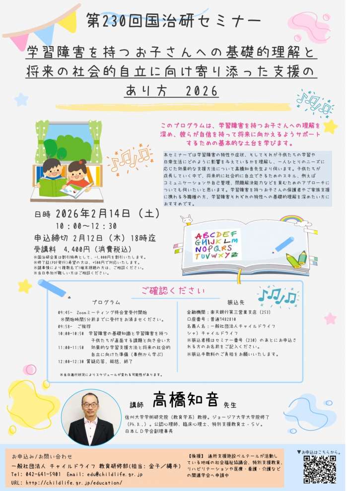第230回国治研セミナー「学習障害を持… 第230回国治研セミナー「学習障害を持つお…