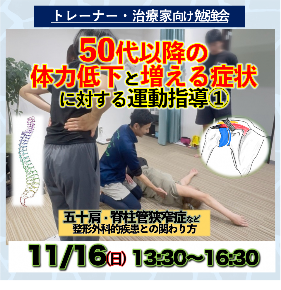 50代以降の体力低下と増える症状に対する運動指導① 〜五十肩・脊柱管狭窄症など整形外科的疾患との関わり方〜