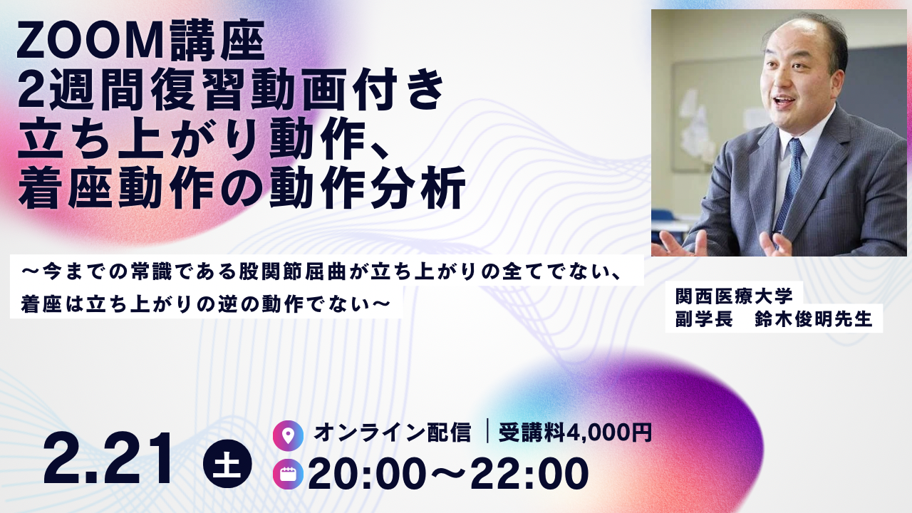 zoom講座 2週間復習動画付き 鈴木俊明先生 立ち上がり動作、着座動作の動作分析 zoom講座 2週間復習動画付き 鈴木俊明先生 立ち上がり…