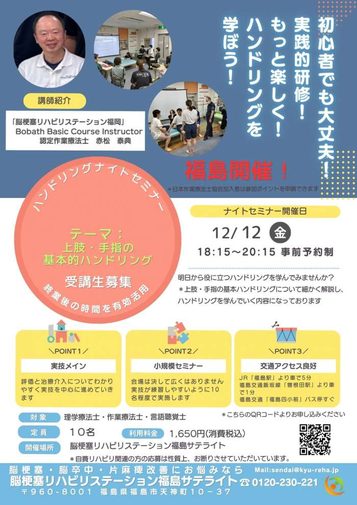 ~上肢・手指の基本ハンドリング~ ナイトセミナー(ハンドリング研修会)