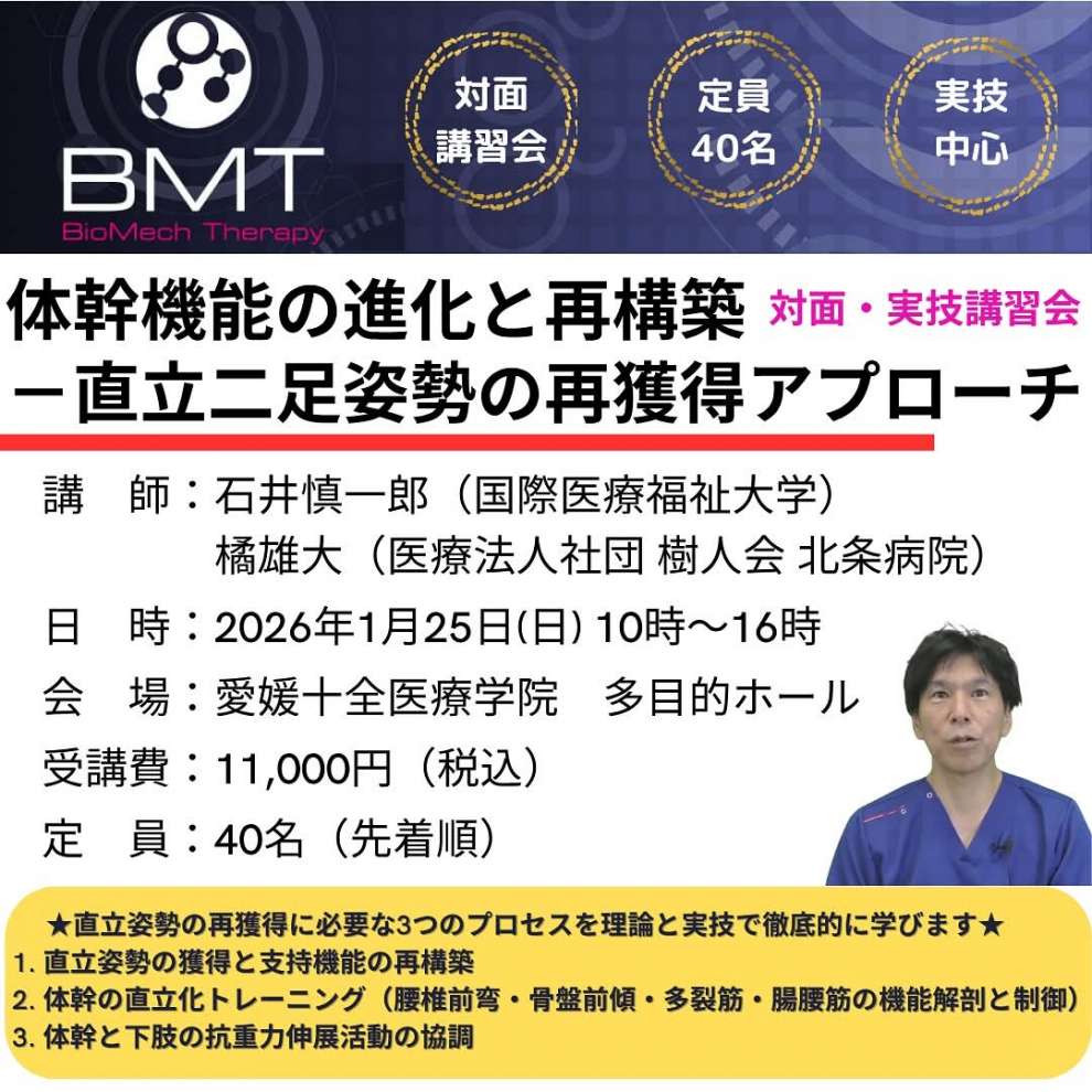 石井慎一郎先生実技講習会 愛媛1day 体幹機能の進化と再構築 -直立二足姿勢の再獲得アプローチ