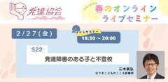 発達協会オンラインライブセミナー S22 発達障害のある子と不登校 発達協会オンラインライブセミナー S22 発達障害のある子…