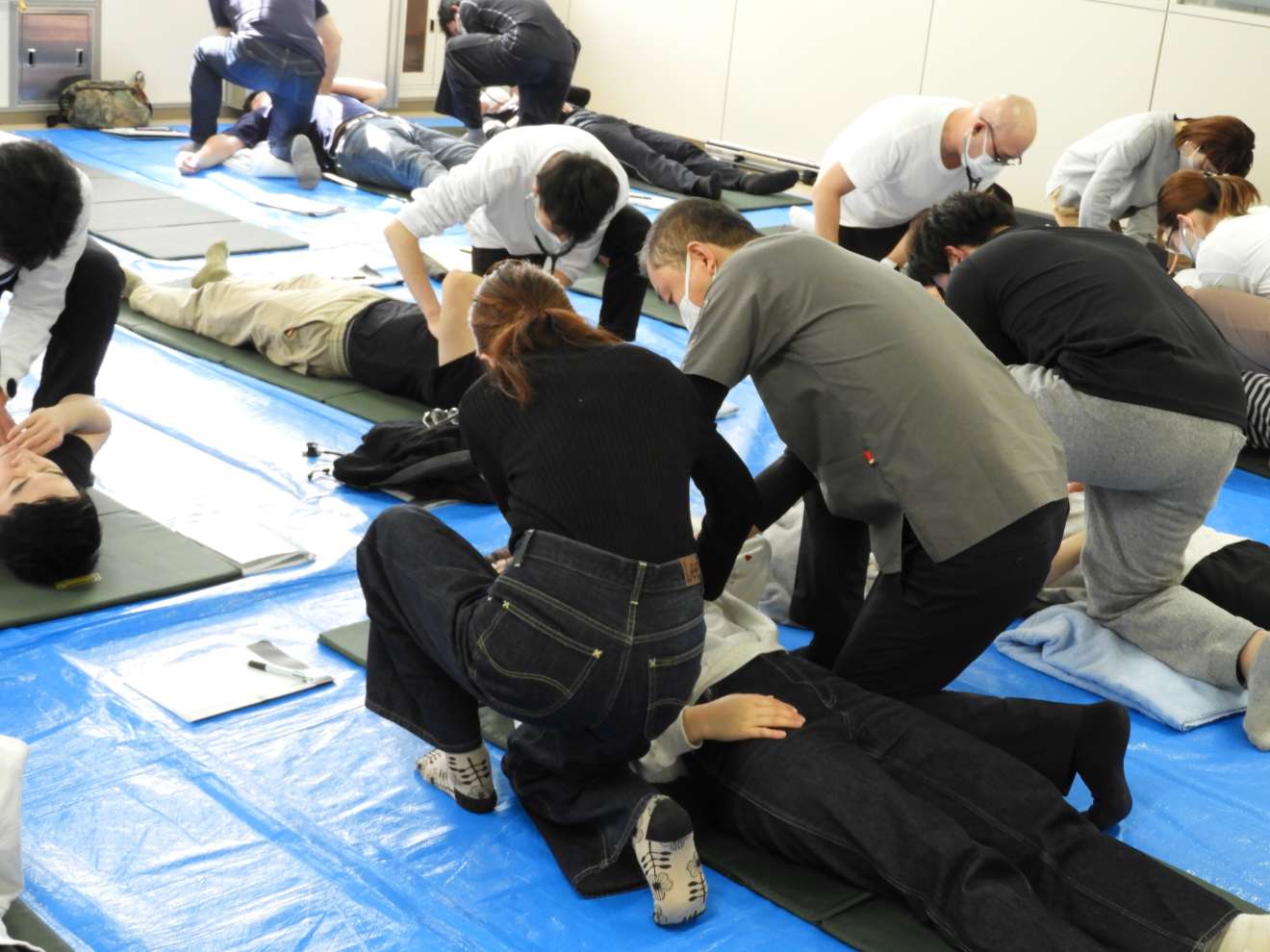 解剖学、生理学、評価方法を含めた呼吸理学療法の講義(午前)と実技(午後)