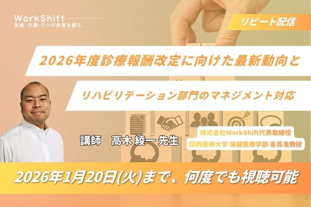 リピート配信 2026年度診療報酬改定に向けた最新動向とリハビリテーション部門のマネジメント対応(125分)(2026年1月20日まで視聴可能) リピート配信 2026年度診療報酬改定に向けた最新動向とリ…