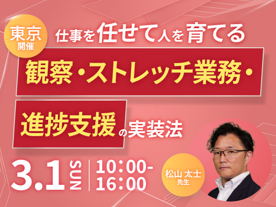 仕事を任せて人を育てるー 観察・ストレッチ業務・進捗支援の実装法~東京会場~ 仕事を任せて人を育てるー 観察・ストレッチ業務・進捗支援の…
