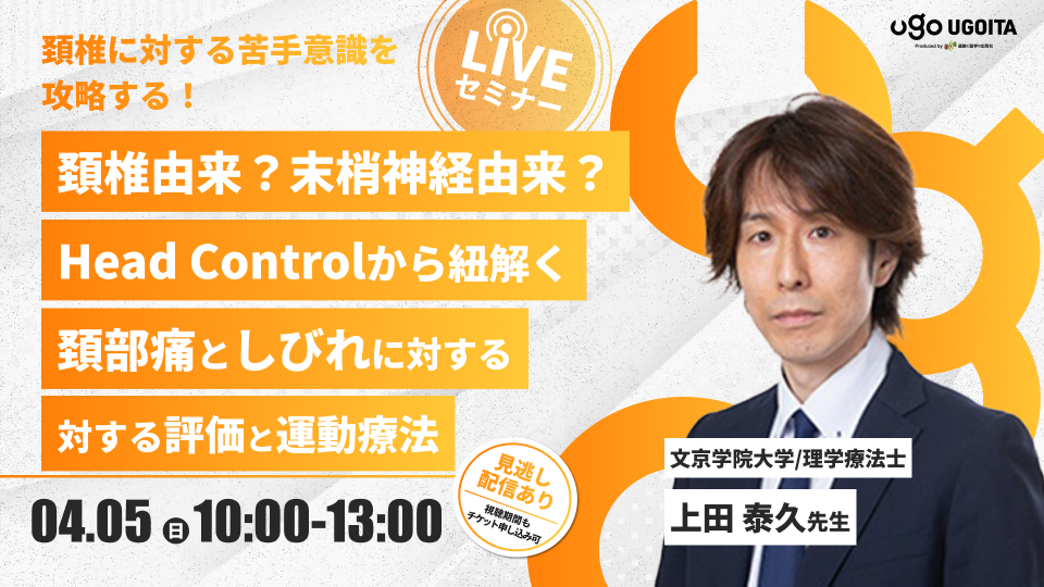 【上田泰久先生】頚椎由来?末梢神経由来?Head Controlから紐解く頚部痛としびれに対する評価と運動療法(LIVEセミナー/ZOOM) 【上田泰久先生】頚椎由来?末梢神経由来?Head Cont…