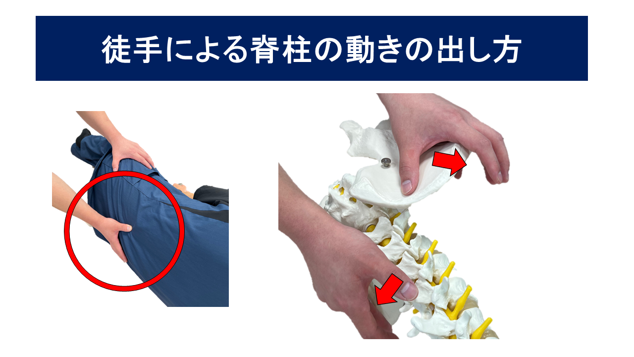 6回コースの中で腰部の触り方、動かし方を学習します。 (No.1の内容には含まれません)