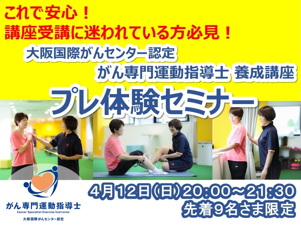 4/12【体験無料】大阪国際がんセンター認定 がん専門運動指導士養成講座 プレ体験セミナー 4/12【体験無料】大阪国際がんセンター認定 がん専門運動…