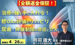 【治療の軸を手に入れる!】変形性膝関節症の評価とリハビリテーション〜ROM制限の制限因子を見抜く屈曲・伸展制限へのアプローチ〜 講師:丹羽雄大先生 【治療の軸を手に入れる!】変形性膝関節症の評価とリハビリテ…