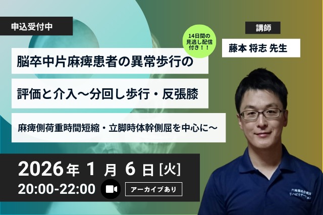 脳卒中片麻痺患者の異常歩行の評価と介入 ~分回し歩行・反張膝・麻痺側荷重時間短縮・立脚時体幹側屈を中心に~(14日間の見逃し配信付き) 脳卒中片麻痺患者の異常歩行の評価と介入 ~分回し歩行・反張…